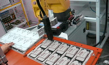 Fanuc六軸機(jī)器人配合注塑機(jī)和沖切機(jī)臺(tái)實(shí)現(xiàn)無人化作業(yè),提高工廠自動(dòng)化,提高產(chǎn)能,可以同時(shí)適應(yīng)很多產(chǎn)品的相互切換。...
